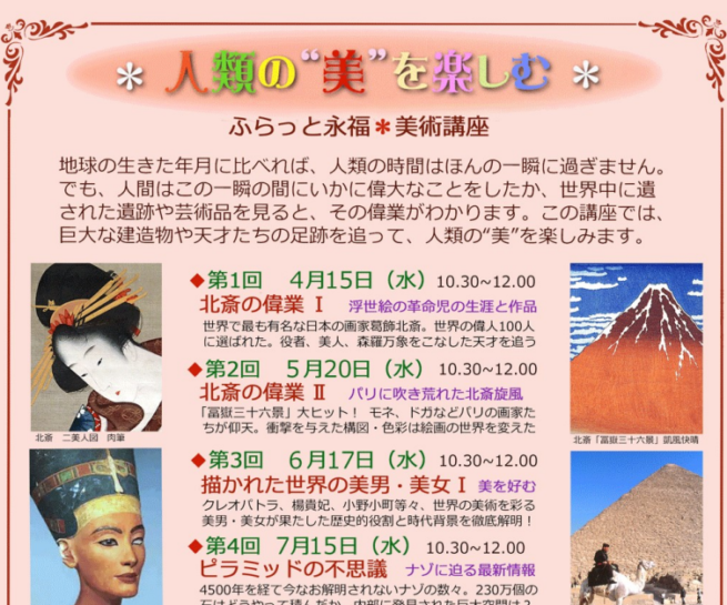 2025年11月にグランドオープンし、世界的に注目を集めている大エジプト博物館(通称・GEM)。エジプト壁画研究家・村治笙子(むらじしょうこ)先生をお招きして、その魅力について講演を行います。 日 時:2026年5月24…