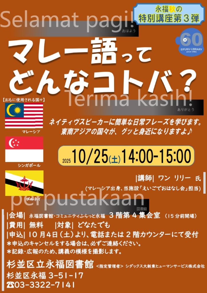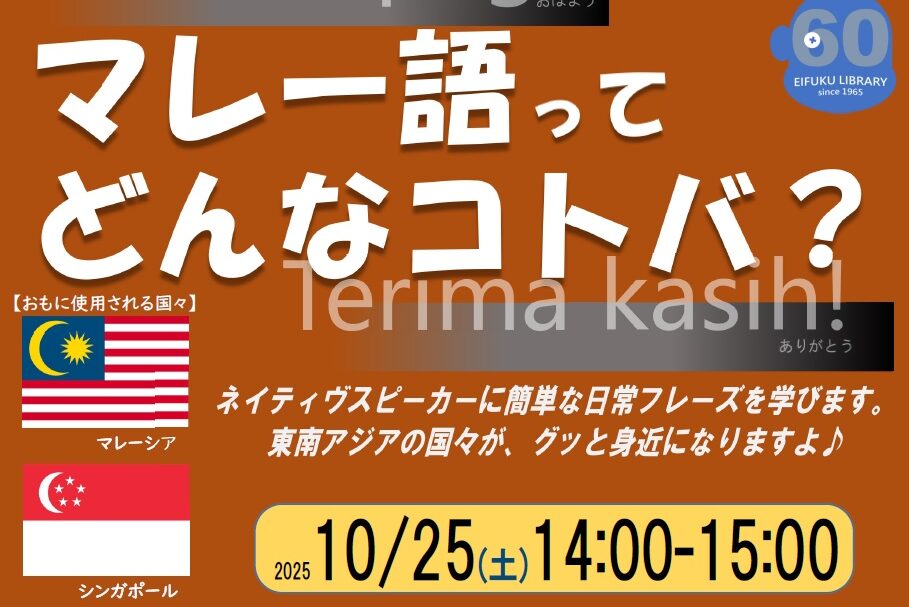【2025年10月25日】永福秋の特別講座第3弾「マレー語ってどんなコトバ?」