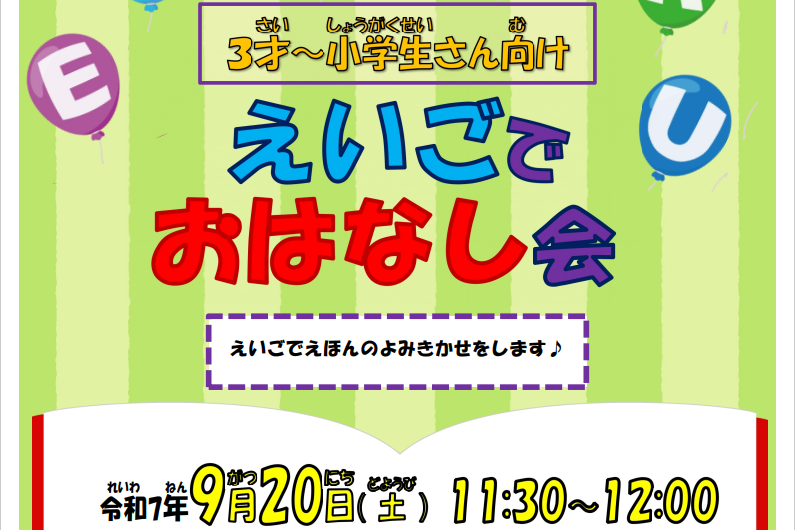 【終了しました】3才~小学生向け えいごでおはなし会【2025年9月20日】