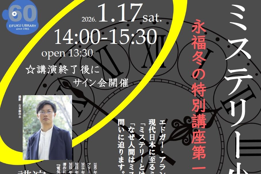 【2026年1月17日】永福冬の特別講座第1弾 作家・逸木裕氏講演会「ミステリー小説の楽しみ」