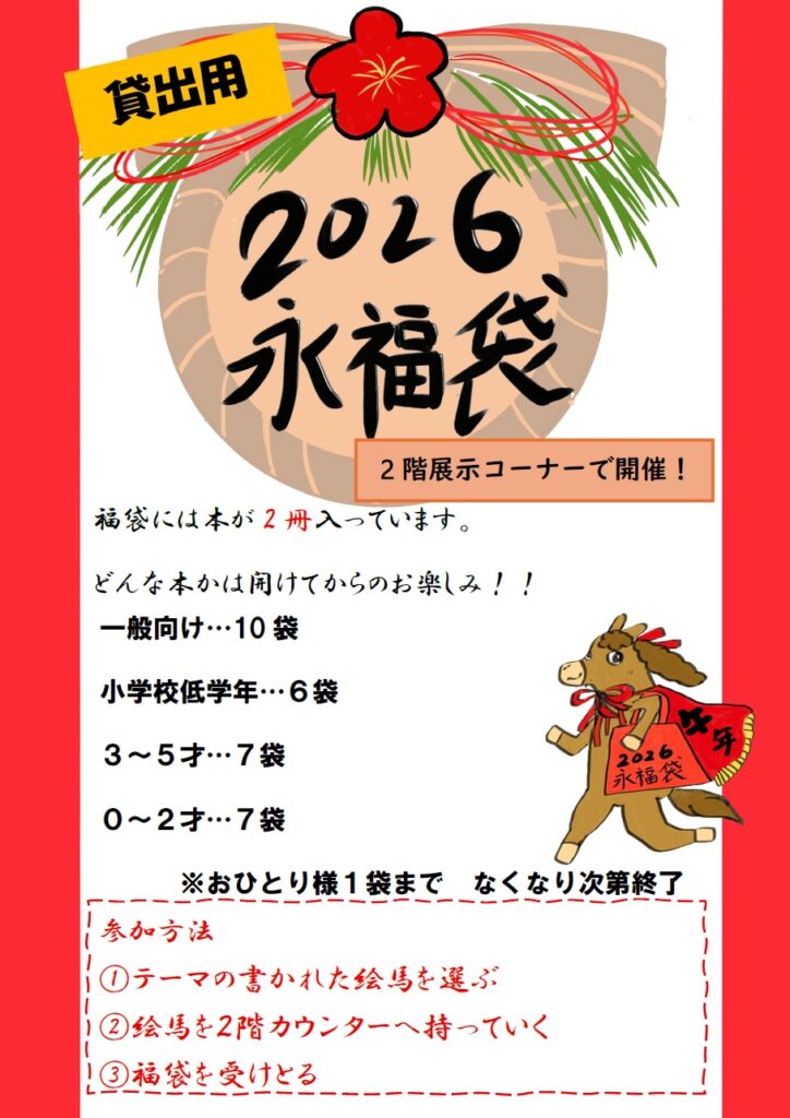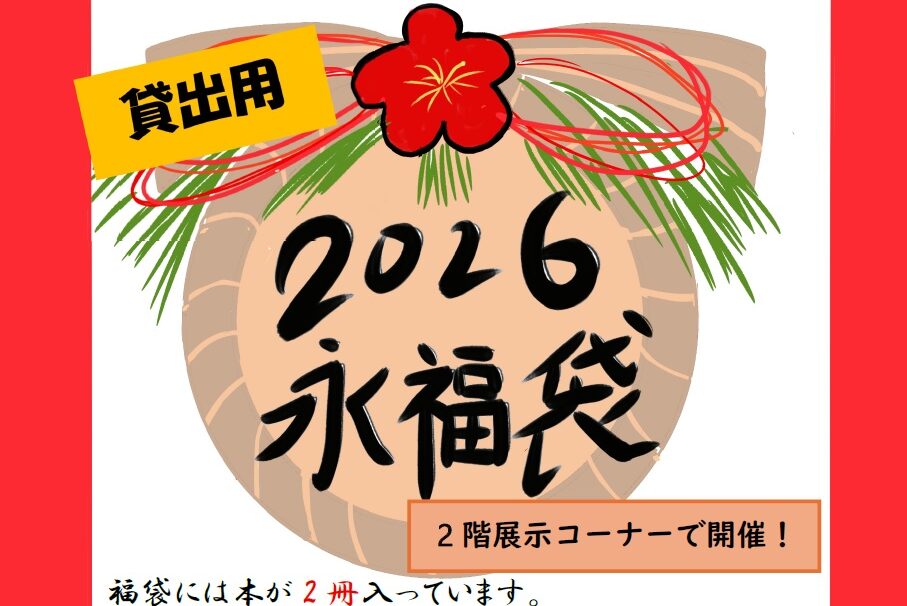 毎年恒例、永福袋!各袋のテーマ名にふさわしい本が2冊ずつ入っています。
