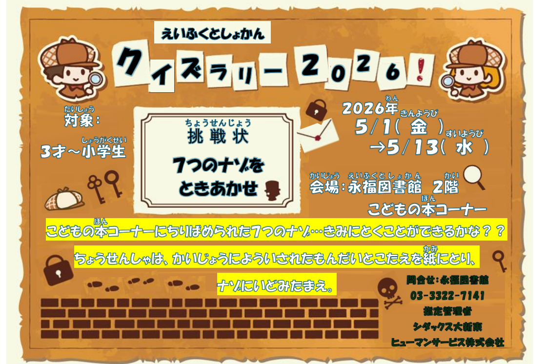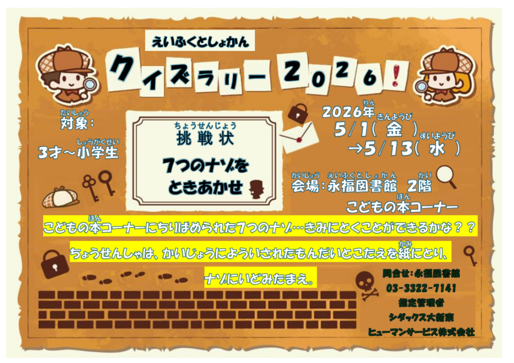 【2026年5月1日~13日】えいふくとしょかんクイズラリー「7つのナゾをときあかせ!」