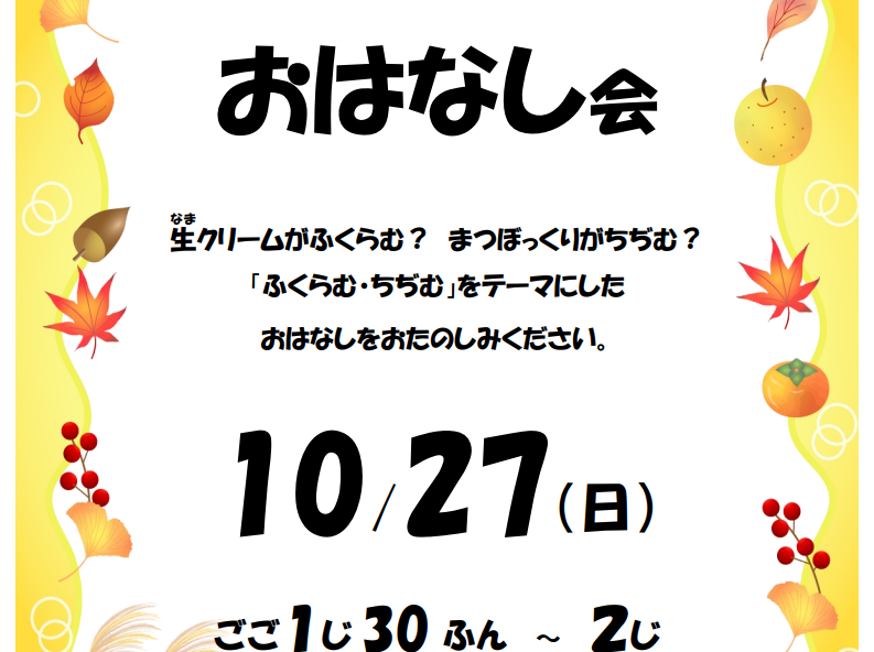 - 【終了しました】小学生のためのおはなし会&ミニ工作会・秋【2025年10月26日】 2025年10月7日