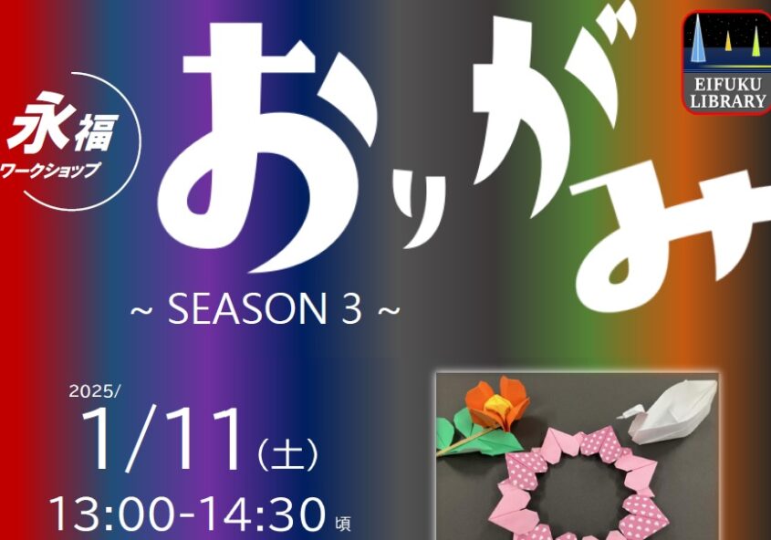 - 【募集終了】永福ワークショップ「おりがみ」~SEASON 4~【2025年11月9日】 2025年10月17日