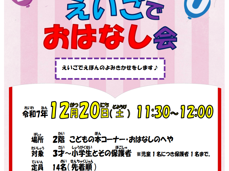 - 【2025年12月20日】3才~小学生向け えいごでおはなし会 2025年11月29日