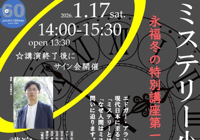 - 【2026年1月17日】永福冬の特別講座第1弾 作家・逸木裕氏講演会「ミステリー小説の楽しみ」 2025年12月13日