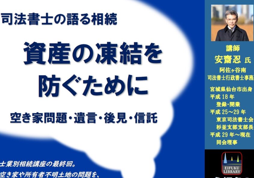 【終了しました】永福冬の特別講座「資産の凍結を防ぐために 空き家問題・遺言・後見・信託」【2025年2月15日】